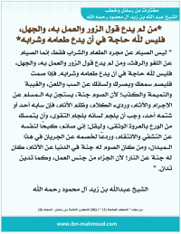 *من لم يدع قول الزور والعمل به، والجهل، فليس لله حاجة في أن يدع طعامه وشرابه*