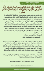 (قال تعالى على لسان لقمان مخاطبا ابنه): ﴿وَلَا تُصَعِّرۡ خَدَّكَ لِلنَّاسِ وَلَا تَمۡشِ فِي ٱلۡأَرۡضِ مَرَحًاۖ إِنَّ ٱللَّهَ لَا يُحِبُّ كُلَّ مُخۡتَالٖ فَخُورٖ ١٨ وَٱقۡصِدۡ فِي مَشۡيِكَ وَٱغۡضُضۡ مِن صَوۡتِكَۚ إِنَّ أَنكَرَ ٱلۡأَصۡوَٰتِ لَصَوۡتُ ٱلۡحَمِيرِ ١٩﴾ [لقمان: 18-19]. فأمره بالاقتصاد في الـمشي وذلك باستعمال التأني، وتوقي الـمحذور. وبالخصوص عندما أصبح السير على سيارات الحديد التي ينجم عنها البأس الشديد. وقد تزايد ضررها، وتفاقم خطرها. والغالب في الضرر من الانقلاب والصدم.. إنما يقع من سبيل الاستعجال وعدم التأني، لأنها بسرعتها قد أثرت في القلوب شيئًا من السرعة الزائدة وما أحسن ما قيل: قد يدرك الـمتأني بعض حاجته وقد يكون مع الـمستعجل الزلل والناس يدركون أن كمال عقل الرجل ورزانته في اعتدال سيره، وعدم استعجاله، كما أنهم يدركون خفة عقل الرجل وطيشان حلمه في سرعة سيره. فهذا دائم التعرض للبلاء على نفسه وعلى الناس. وقد قال النبي ﷺ لأشج عبد القيس: ««إِنَّ فِيك لَخَلَّتَيْنِ يُحِبّهُمَا اللَّه : الْحِلْم , وَالْأَنَاة». فقال: الحمد الْحَمْدُ اللَّهِ الَّذِى جَبَلَنِى عَلَى خُلُقَيْنِ يُحِبُّهُمَا اللَّهُ وَرَسُولُهُ». فانتبهوا من غفلتكم، وتوبوا من زللكم، وحافظوا على فرائض ربكم ﴿وَأَطِيعُواْ ٱللَّهَ وَرَسُولَهُۥٓ إِن كُنتُم مُّؤۡمِنِينَ﴾.
